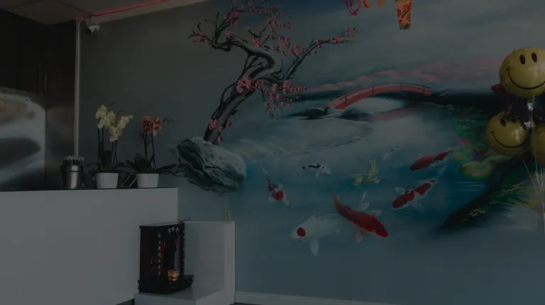 a mural of koi fish in a pond