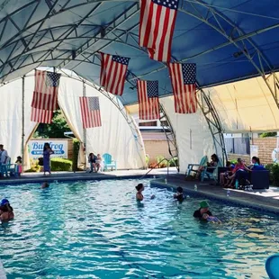 Our back pool is open February through October. We put the sides up or down depending on the weather. It's a cozy 90 degrees.
