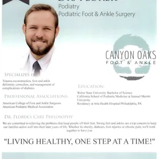 As a podiatrist in Visalia, California the most important things to Dr. Florek aren't feet, it's the people who are attached to those feet.
