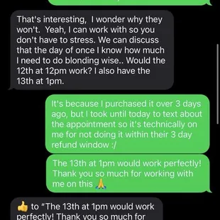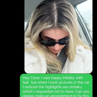 Edited to add (12/20): No refund or fix has been offered and was left on read until I posted this review. I was told by her that she went "above and beyond to accommodate" and "you're just upset". I am now looking for another hair stylist and salon to fix my hair when it recovers more from this as no attempts to reconcile this situation was made :(I'm so sad to have to write this review because I had such a good experience with Cece in 2021. We had such a great conversation and I loved my hair! This was my first appointment and it went great. Turns out the Groupon deal I got back in November is for new clients only. Darn. I had reached out to make an appointment and she let me know. That's okay, I let her know that I am willing to pay extra to have my hair done the way that I had asked for years ago. I wanted my hair the same as it was years ago. She was going to make it work for me since Groupon won't refund me the order. Hair appointment does not go as expected. I reached out to her right after my hair appointment (like 10 minutes after) saying I was unhappy and asked for a fix. I was happy she was willing to fix. She spent 30 minutes on it for the fix and that was it. I was really nervous about it but was hoping it would be okay.Flash forward to today. I had my first wash and my hair just looks nothing like what I am asking for. I text her letting her know it isn't working and she was arguing with me. I did mention that I was going to leave a review, so she mentioned that I threatened her with a review and just took my complaint very personally. She said my hair is fragile, I have lost some hair but she said my hair is thin and fragile and that's why I did not get the hair I wanted. She even circled my hair in my picture to argue with me about my hair being damaged. She said ANY damage I have is not from hair appointment. Even though I got blonde and I'm not even mainly upset about the damage. She also admitted my hair was highlighted, which was part of the Groupon deal and not what I initially requested or asked for in my texts. I spent over $300 to not get the hair I want and to be argued with when I am just devastated to not have my hair the way I wanted after not having my hair done for years :( I just wanted to have the hair I asked for. I am really bummed because I really loved her and enjoyed my first appointment with her. I would have left 2 stars if she didn't leave me on read after she admitted she highlighted my hair instead of balayage like I initially asked.Also I should specify that I'm autistic, and it was hard enough having to navigate all of this without support. I did not tell Cece I was autistic because I am afraid of people's judgment but I need to share this because I really feel like I communicated as well I could for someone on the spectrum.
