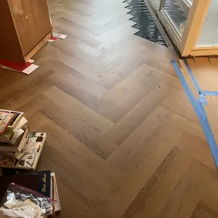 Gaia Red Series flooring installed with herringbone pattern. WOW!
