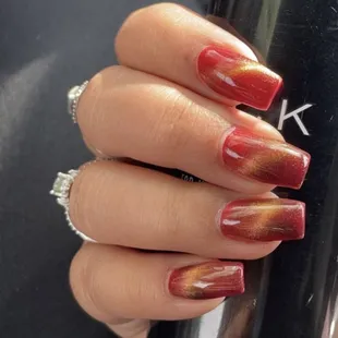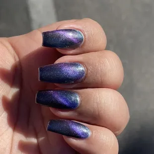 My mom and I get our nails done here regularly and we always love them, all the pictures are fills with cat eye polish (it's a magnetic color that makes the stripe) The nails shown were all done by Benny