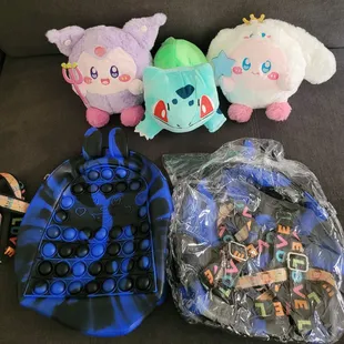 I won the Charmander, Stitch, and Kirby. The little girl and the pop it were free gifts
