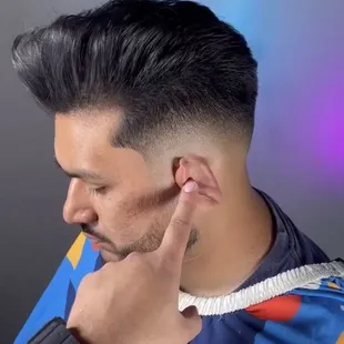 Mid Fade Textured Top on Straight Hair