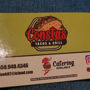 I heard about Constas from a neighborhood social media page and since I love tacos, and I saw that they would be nearby on Wednesdays, we had to try it. They were super nice. Food was fresh and delicious. I had the asada burrito with avocado and no onions (which us what I seem to order every Wednesday now). Hubs had the asada fries. Next trip he had the bacon cheeseburger on Sourdough and we had to get 2 dollar tacos too. We absolutely love them. I definitely recommend. Next week I'm going to try the chili Verde burrito. They also have loaded meat of choice potatoes and offer a "bring your own bag of chips" and they load it up too which is pretty frickin cool! Give em a try! You'll love em too!