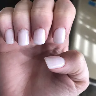 Horrible pedicure. Jagged edges, very sloppy polish.