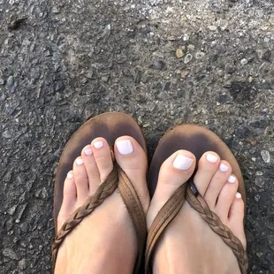 Horrible pedicure. Jagged edges, uneven filing, and sloppy polish.