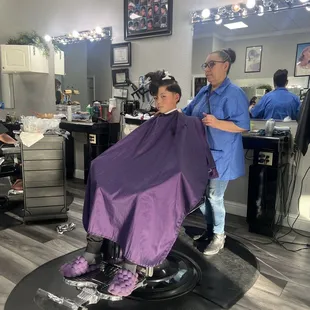 Dave and Marilu (?) run a nice little salon/barber shop. We regularly take our boys in for haircuts, and they both do a fantastic job on kids. They have a number of stations, and welcome walk-ins and appointments. Walk-ins can have a long wait time if they are busy, but they do their best to keep things moving. My only issue is the place could use a little tidy-up and updating. This is easily over-looked though by the friendly service and great hair cuts. *Side note - English and Spanish speaking staff.