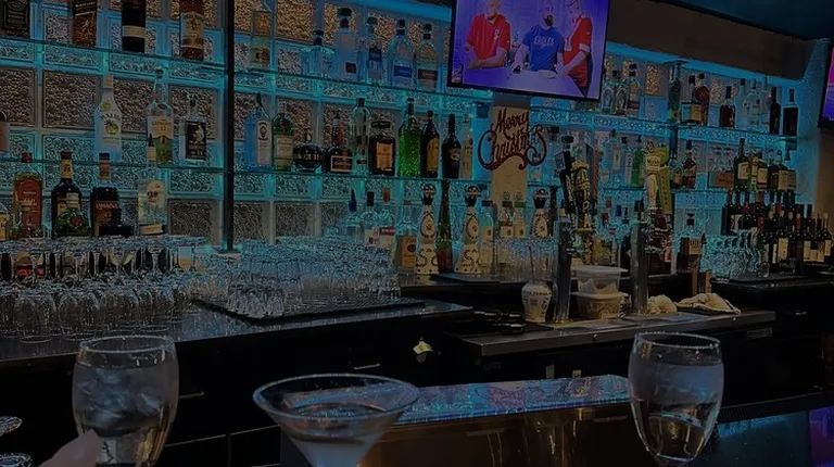 a bar with blue lights