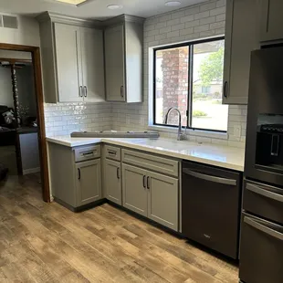 After meeting with 6 contractors and remodeling companies, we easily decided Delerio was our best fit! When other contractors had trouble following through with meetings or phone calls, just to get bids, Delerio was prompt and professional, and most importantly, timely! When you decide you want to remodel, waiting is disappointing. The rep that came out was Jayeson, and he was our first deciding factor in choosing this company. He was knowledgeable, helpful, and even more importantly for us, friendly. You'll meet with your rep a few different times before your construction begins, and it quickly got to the point that we were looking forward to visiting with Jayeson when he'd come over to plan. In addition to that, every aspect of the project can be done by Delerio. They have in-house crews for all stages of your project, from demolition, to the final installation and finishing touches of hardware and appliances. This is a huge factor in your remodel going smoothly. Contractors who have to sub out each piece of the project can be left waiting for schedules to align in order for the next step to happen. And I'm being totally honest when I say, every single employee who's been in this house has been friendly, respectful, helpful, very good at their job, and leaves the home clean when they leave each day! You can tell the employees are happy and treated well. They love their job and their company, and it's just obvious. They use a very cool app that shows you the job schedule, pictures of your materials as they're being made (like cabinets and counter tops) and your color selections. You can email the employees right there, and see all of the pictures of progress from start to finish. Let me take a moment to be frank. I'm involved. There are days when I've spoken to one employee or another, three or four times within a few hours. And whether it's Abel, who manages the oversight of entire projects, coordinates different stages of the project, and knows pretty much everything there is to know about your remodel from start to finish, Sal, who designs layout and gorgeous custom cabinets, and whose team is phenomenal at what they do, or Rachel, the communication guru who keeps information flowing from company to customer, and vice versa, they've never acted irritated or tired of answering my many, many questions. They are patient, and sincere, and have done everything in their power to help our project along quickly and beautifully. Josue did an unbelievable job with our back splash tile, Jose with end-of- project immaculate detail, and Luis is the sweetest guy you could have in your home. These crews become people you actually look forward to seeing the next day! We are now almost completely finished with our kitchen and living room remodel, and I think the pictures will speak for themselves. If 2022 greets you with wanting to take the leap into an updated living space, and you're not sure who to trust with your money and your home, we sincerely feel that Delerio will not disappoint you.