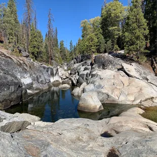 You can never quite tell what kind of animals you will meet at a place like this! We saw a snake kill a fish! And one camper told us, get away from our campground--our dog bites! Never can tell!But the place is awesome and unforgettable--campsites are fairly well spaced and the camp hosts, a British couple who travels the US as camp hosts, were incredible! If you can, get a site in the creek side--those are often set against rock formations. The rocks slides are fun, but so full of people. There are dead trees galore, maybe from the drought or bark beetle. It does detract somewhat from the views. And do not forget to go to the waterfall, a 15 minute hike from the main water slide. The series of cascading falls, the lack of people as opposed to the hundreds near the main slides, simply unforgettable.