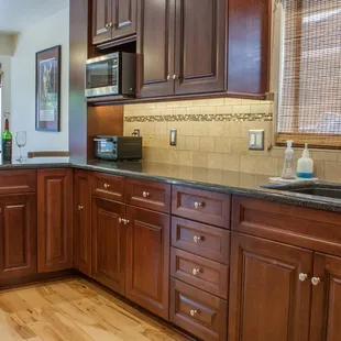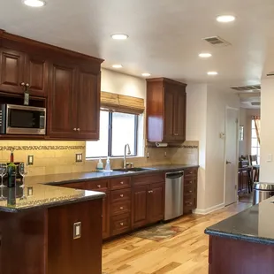 A complete gut kitchen remodel. Beautiful colors, great products. The small prep sink is next to the cook top...