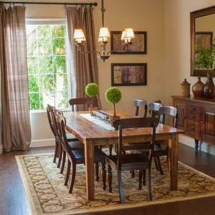 a dining room table and chairs