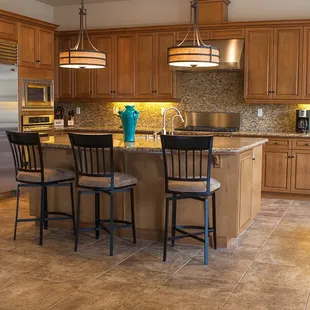a kitchen with a center island