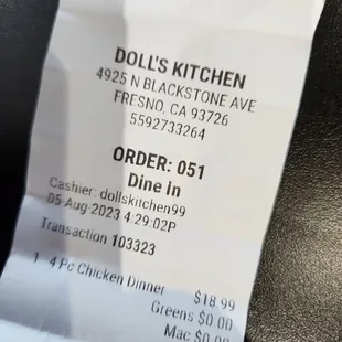 My receipt charging me more than the menu on the wall and an extra fee because I wanted my two included sides to be mac n cheese.