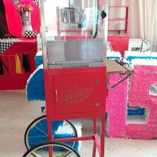 Party rentals! Popcorn machines, cotton candy machines, snow cone machines, karaoke machine, tables, chairs, tents, and bounce houses!
