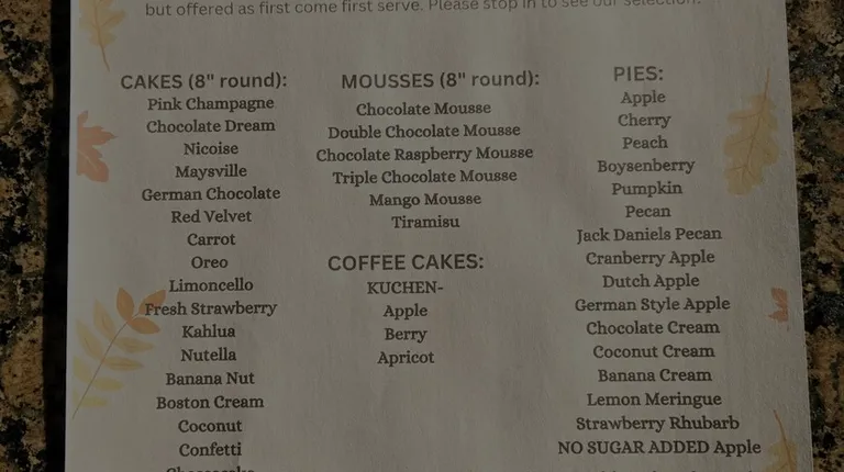 4/5 only because prices are a bit highOn this day I was in for a birthday cake for my husband. I wanted to get him a carrot cake but I don't particularly care for the little frosting carrots that are on the top of the cake. They just look weird. Instead, I opted for a banana cake with a simple cream frosting. I would have liked less nuts on the side as my grandchildren were also going to be eating the cake and they don't like nuts. The cake was delicious. I asked that Happy Birthday be written on the cake. This is the first time the sentiment was written in red gel on a piece of plastic and placed on top of the cake. In the past I was asked to select a color and the sentiment was written on a banner and placed atop the cake. Hmmmm....