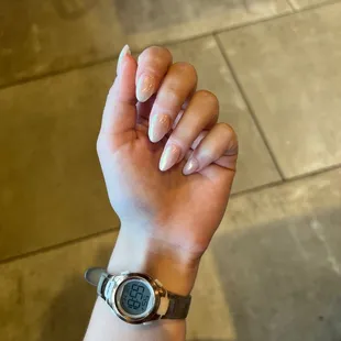 Came in for a short almond full set with gel. Was pleased with the color and the girl helped me pick a nice shape. The acrylic (and the polish obv) on one finger chipped in a weak spot a day later. I don't live in town but I'm sure if I went in they would have fixed it for me. $55 plus tip for the service was okay value wise. They also brought me a beautiful Diet Coke with lots of ice , ha so nice.