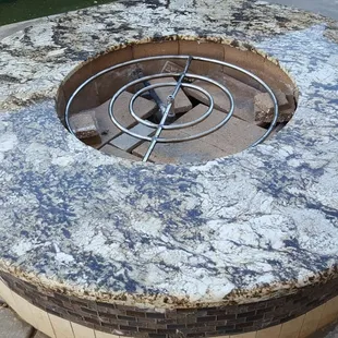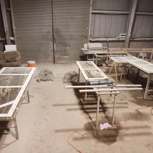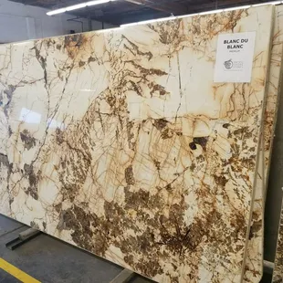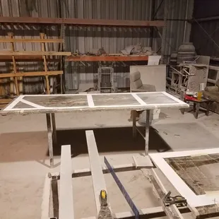a marbled table in a warehouse