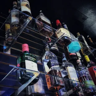 a row of liquor bottles