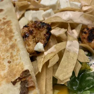 Mango shrimp salad comes with 2 PCs of cheese quesadillas.