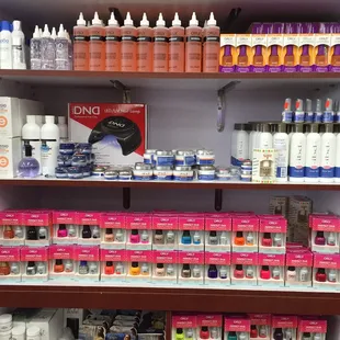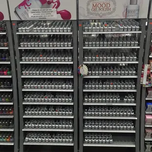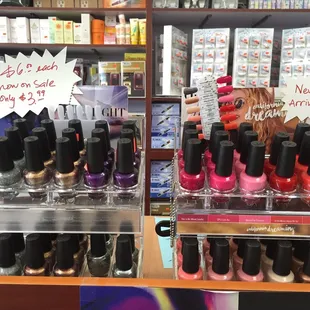 Love love love this place!! I feel a kid in a candy shop in here, everything is so cute and colorful. The workers are super helpful and go out of their way to help me find exactly what im looking for. They have so many colors and brands (OPI, Kiara sky, perfect match, and more... I can't remember them all). They have full racks of every color and shade imaginable. Their prices are also reasonable compared to retail stores like Walgreens and whatnot. I'm just learning how to do nails and the man (who I think is the owner) is very helpful. He knows exactly what I need and tells me how to use it. Will for sure come back again!