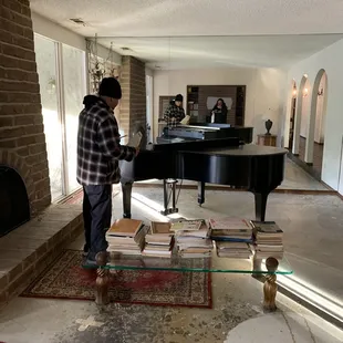 Baby grand makes it's home in my living room... Guys setting it up...