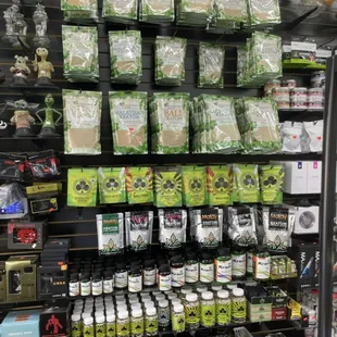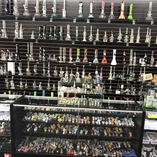 Pretty cool shop, one side is smoker side (for tabaco use only, y'all ) and one side is clothes, hats, etcSmoker side had all the regular stuff; spoon pipes, some decoratives (cool to look at, not so cool to smoke), bubblers and bongs. Vape batteries and necessities for papers/blunts/spiffs etc A little on the pricey side, but probably worth your time to look at.
