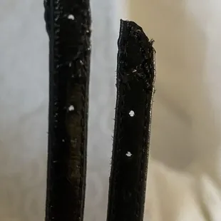 The silver Edelman loafers had DEEP scratches!!! The Valentino's were scuffed along the front edges... they look amazing
