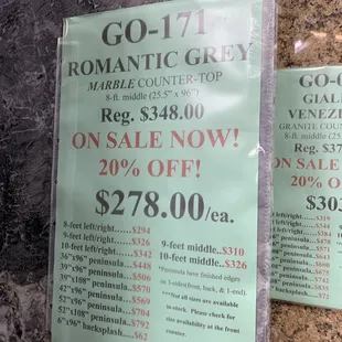 Visited today, they were helpful and attentive! The prices were labeled as needed. They gave us all the information we needed from time of order to pick up and various other helpful situations. They helped our son, who is six sit down and be occupied as we searched for the marble we wanted. We will be recommending this company based on the way we were treated from walking in to walking out!