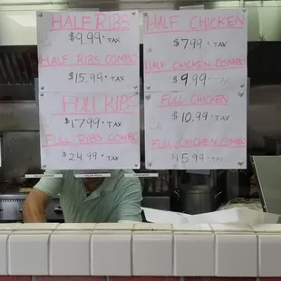 a menu on the wall