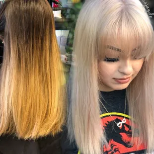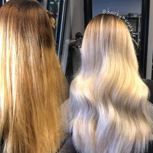 I have gone to Mica for my hair for 4 years and I've had her dye my hair dark brown and even gone blonde back to dark brown and my hair and it always turns out beautiful! I always leave feeling so confident! I highly recommend anyone wanting to go from dark hair to blonde go to Mica! You won't leave disappointed.
