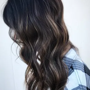 Foiliage. Combination of babylights and balayage for a soft and saturated blend.