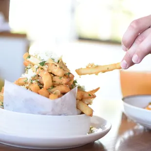 Heirloom is a great place for a casual date or even with a group of friends or family. I say casual because it's a nice restaurant, in a nice area, but it's not "fancy". You wait in line, order, and wait to be seated. Plenty of indoor and outdoor seating (although sometimes not enough because of how busy they get). I've never really had to wait too long for a table after I've ordered though... however, the line to order is a different story. You also have the option of sitting at the bar as well. I've had the pleasure of dining in all areas and they were all enjoyable (outside in the summertime is a negative for me though, even with the misters). Now, on to the best part: The food!My personal favorite dish to order is the Mushroom Taquitos. Love everything about it. All the flavors come together perfectly... the tortilla, the mushrooms, the cheese, the slaw, the sauce! You'd forget there's no meat! :PFavorite appetizer? The loombread and Brie!So freaking good! I also love ordering the Garlic Noodles and the Surf and Turf, depends how I'm feeling and how hungry-- I'd order all in one sitting! My boyfriend usually goes with the Tri-tip Sandwich, which is really good and flavorful as well. Love the garlic French roll it comes on. Their fries are a perfect snack as well. When it comes to my friends and I, we usually order a bunch of different dishes/appetizers and share everything. We've tried all of the above... plus, the Hipster Ceasar Salad, the Butternut Squash Ravioli, the Sweet Corn Ravioli (a must-have when it's in season), the Spicy Roost, the Fig Pizza (yum), the Cast Iron Meatballs, and basically all the pasta dishes. All delicious. I haven't had a bad dish, or drink, here. We leave satisfied every time!Heirloom is never a bad idea!