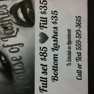 I wanted to really like House of Lashes, but after my experience this weekend, I just canNOT! Had my lashes done by Megan once prior and koodos to her, they were beautiful. She was also patient and did take her time.However, I went back two weeks later for my fill and that's when I decided, never again.I work out of town on the weekends but stayed in town specifically for my fill on Saturday morning. I live outside of Fresno and drove the hour to House of Lashes.When I walked in, Megan was not there and the other employee working asked if my name was Kylie - I told her yes and she said, "well we text you yesterday to confirm your appointment and didn't get a response, so we cancelled your appointment."I responded that I had never received a text from her and she rudely responded, "yes, we text you at (xxx) xxx-xxxx (a complete different area code than mine) - I told her that was not my phone number and she said, "okay well you can come back this afternoon at like three."I told her that wasn't possible, that I have work and that I stayed in town specifically for this appointment, this morning - her response was there was nothing they could do about it. So I left, shut the door behind me, then opened it back up to ask a question and she was talking smack about me to her client! About how I wasn't flexible. Are you kidding me? I am not the one that made the error. It was their responsibility to get my phone number for confirmation purposes and I know they had my accurate phone number because they had text me a receipt the last time I had been there.That is unprofessional and poor customer service!