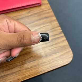 Shape was bad. White tips were huge and magnified by the thick acrylic application. Ethics in the workplace should be checked. Hands down the WORST nail salon experience I've ever had!!I didn't come back I'm just still thinking about this