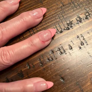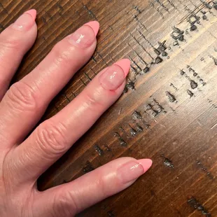 was in a rush getting to work. just noticed one side of my nail isn't even painted fully... one even chipped Look at all the brown they didn't wipe off :( Disappointed and I don't have time to go before or after work to fix it