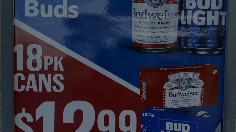 a budweiser beer can on display in a store