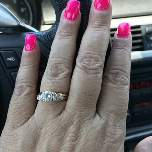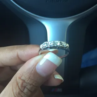 Brought my wedding ring in after a small marquee in the band fell out and was lost. Also decided to have the ring resized to comfort....#somanyyearssomanypoundsAs soon as I walked in I was greeted and had my questions answered promptly. 1. How much will it cost to replace the marquee? ($100-$150)2. How much will it cost to resize? ($100)3. Are there additional labor costs? (No)4. How long will it take to do both jobs? (When would you like it?) I dropped my ring off Friday @ 2:00pm and picked it up the following Tuesday @11:00am. Total cost $250 & my ring was shiny and clean just like the day I received it!
