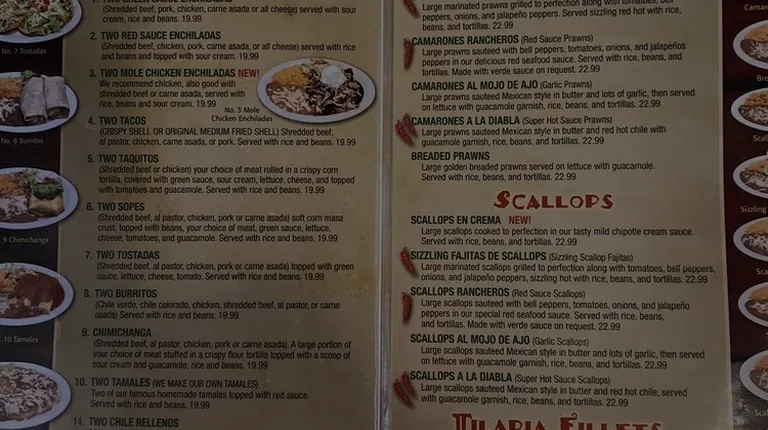 First visit to Javi's since 2016. When I pulled into the parking lot, I saw two homeless people with a shopping cart. They were gone by the time I left.The service was outstanding. We were warmly greeted with fresh chips and three sides: cabbage salsa, red salsa, and bean dip. I think I liked the cabbage salsa and the bean dip the best.I am grateful they have lunch specials here. Looking at the regular menu, unless you want nachos or a salad, most entrees are were $19.99, $20.99, and up.I had the combo plate. The tamales were good, but nothing special. The rice was better than the beans.So looking at my previous review, not much has changed. Our server was great, checked up on us regularly, and asked if we wanted split checks. The fish tanks are still there, but I didn't see very many fish in the front tank.