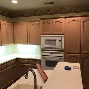 Golden oak to grey urethane cabinets job