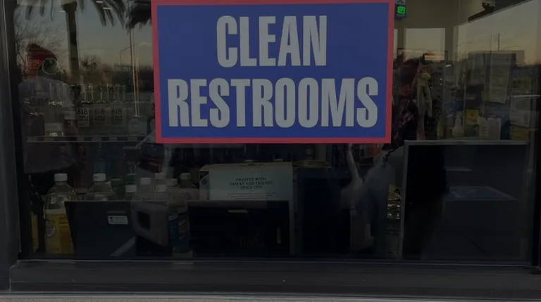 Despite the sign, absolutely NOT clean bathrooms!!! there was literally feces when I went to use there bathroom. ABSOLUTELY DISGUSTING!!
