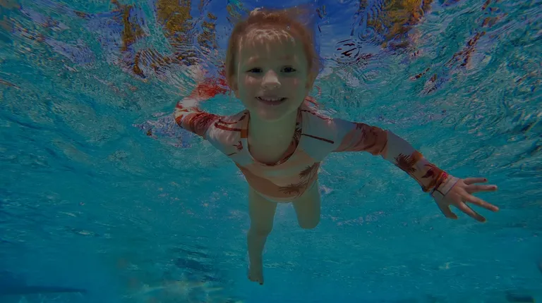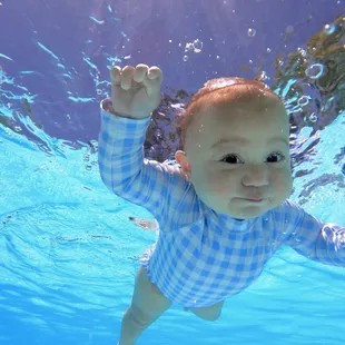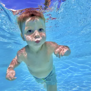 My 1 1/2 year old kicking and swimming to the edge of the pool on his own under water.