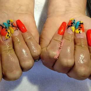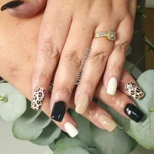 Leopard print nail art.