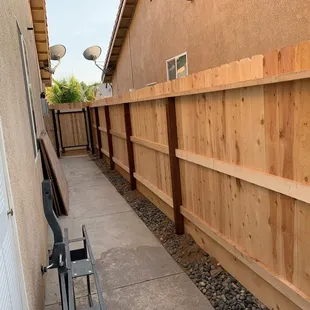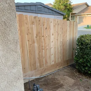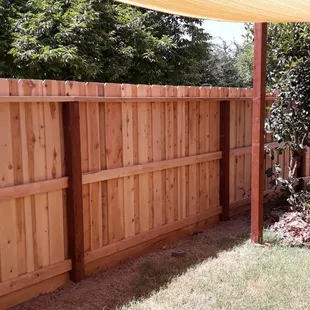 My redwood fence is beautiful! The fence team worked in a timely and neat manner, and completed the job as planned. Shortly after the install they returned to fix a couple of bad spots, and they clear sealed the fence. The one side gate was built VERY well with a strong black iron frame. Totally satisfied!