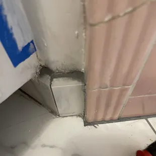Gouges in the wall, grout at change of plane, and sloppy grout