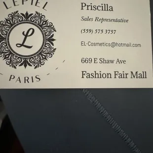 11/06/24 Really clsssr place in Fashion Fair Mall. Greeted by kind worker and offered a sample. Really pretty scent and they offer great bundles! The worker gave me her card to come back for Christmas shopping! Great service & store! Highly recommended!