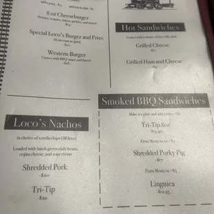 A section of the "Burgers" and the "Lunch" menu. Loco's Motive Chew Chew BBQ menu is five pages...