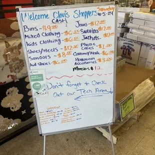 Pricing board can be very confusing. It'll give "clothes" a certain price (like 6$), but further down the list it will have higher prices for "shirts" or "sweaters" or "pants" which is weird because these should be under the "clothes" category. Compared to other bin/liquidation stores - these prices are on the higher side. I would say that they keep their store pretty clean though compared to others, and it's extremely spacious.