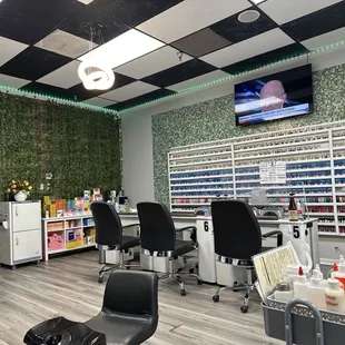 Nail salon w/ many pedicure chairs